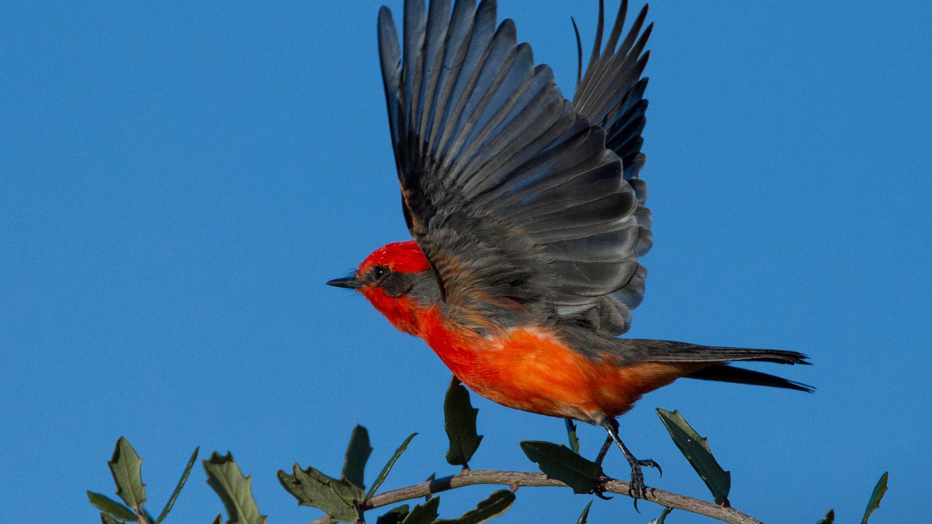 Сидя на своем посту, КТ зорким глазом замечает летящее насекомое, после чего молниеносно взлетает, хватает добычу на лету и возвращается обратно. Придерживая одной лапкой более крупное насекомое, КТ выклевывает из добычи маленькие кусочки.