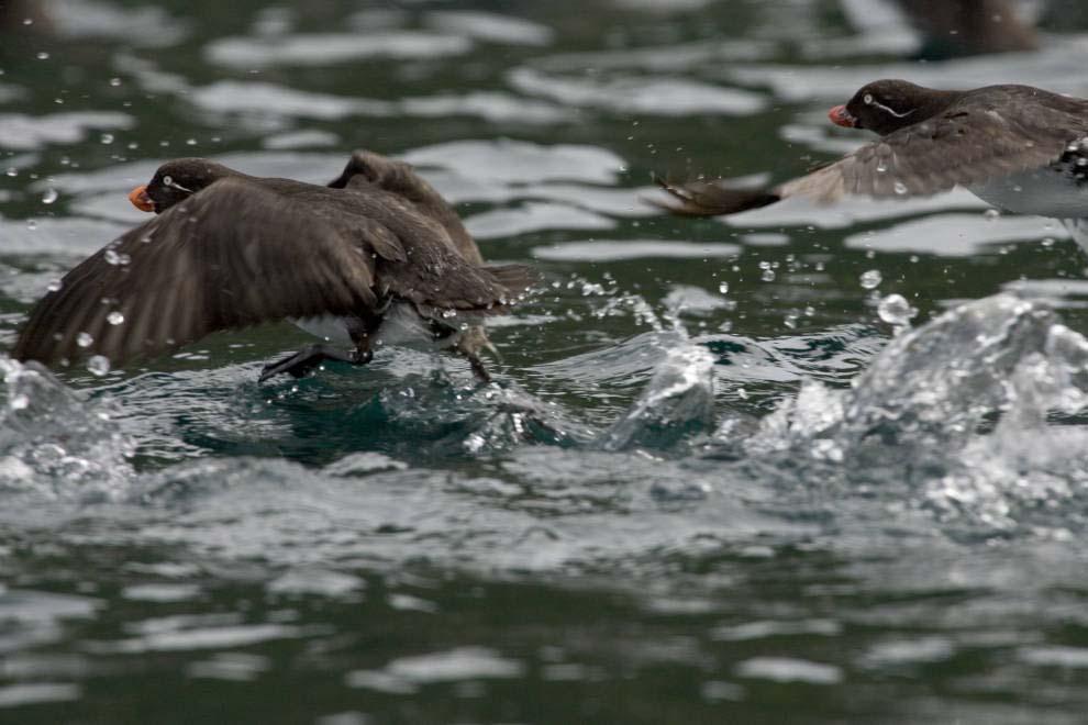 Б. - коренастая чистиковая птица размером с голубя с ярко-оранжево-красным клювом. Расцветка, в которой преобладают белые (грудь и брюшко )и черные (верх головы и спина) тона характерна для многих морских птиц.Интересная птица. Из этого семейства была малая конюга – похожи они немного