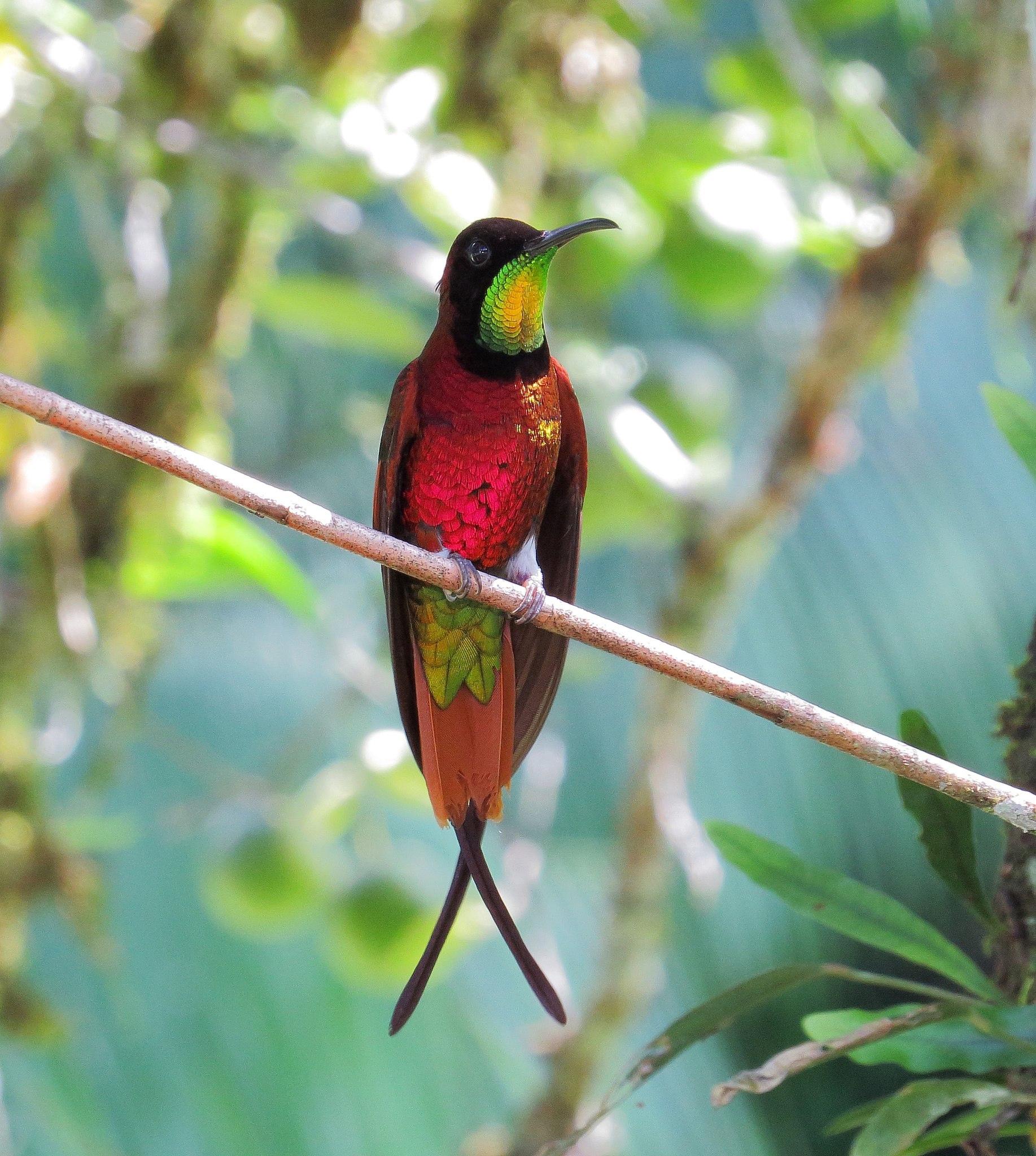 ТК по великолепию оперения может соперничать с другими колибри. Темя и полоса, окружающая горло,-бархатисто-черные, туловище медно-красное, переходящее в гранатово-красный с золотистым отливом; горло золотистое, отливающее изумрудно-зеленым, или топазово-желтым, в зависимости от освещения.Неожиданно легко и ожидаемо красиво.