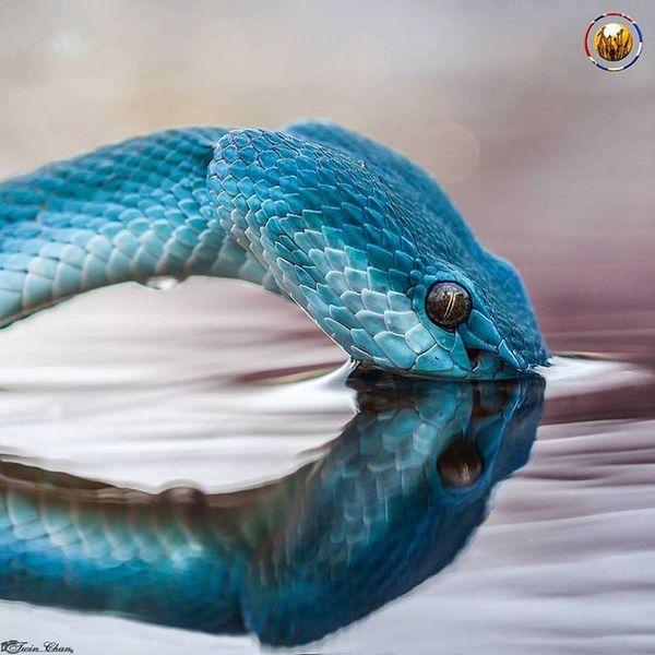 ГКК (островная древесная гадюка) - очень красивая змея голубого цвета, одна из разновидностей островной куфии - эндемика М. Зондских о-ов в Индонезии. На разных о-вах водятся куфии зеленые, желтые и оранжевые, а на о-ве Комодо встречается наиболее редкий вид - змеи цвета морской волны.Глядя на палитру, рассчитывала на красивую голубую бабочку или птичку.