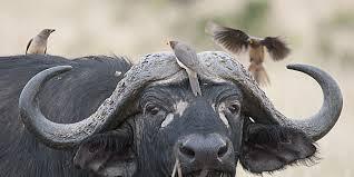 Есть птичка, буйволовый скворец, или волоклюй, она выклевывает насекомый, паразитирующих на животных. Наверное, в кроссе изображена одна из них.)