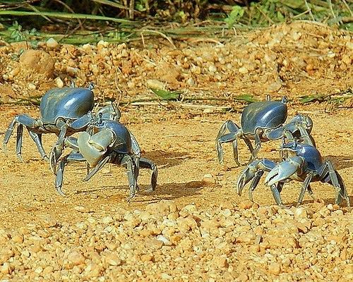 В нескольких км от океана в мангровой роще, он роет нору и агрессивно защищает ее от других колонистов.