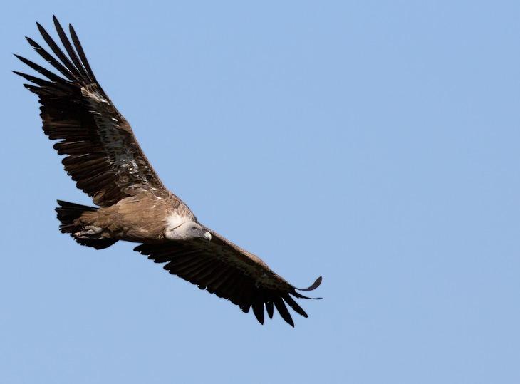 О видовой принадлежности птицы по мелкому изображению в кроссе судить не берусь, но ниже - несколько фото белоголового сипа - птицы из рода грифов - в полете. Вроде похоже.