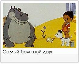 Кроссворд сделан с героями мультфильма «Самый большой друг». Это советский рисованный мультипликационный фильм режиссёра Пётра Носова по сказке Софьи Прокофьевой. Мультфильм для детей — о настоящей дружбе.