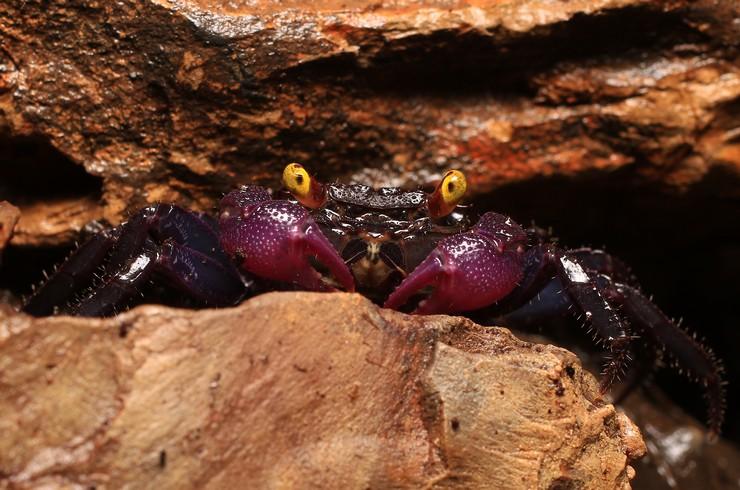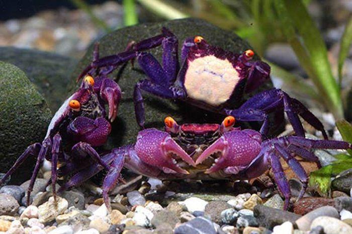 ответитьКВ – пресноводные тропические крабы, ведущие наземно-полуводный образ жизни и не возвращающиеся в море даже для размножения. Они отличаются миниатюрными размерами (до 3 см) и красивой расцветкой фиолетовой, реже -оранжево-красной). На карапаксе (хитиновом панцире) - крупное пятно, которое напоминает силуэт летучей мыши. По одной из версий, благодаря этому пятну, вид и получил свое название. По другой - вампирами их назвали отнюдь не за кровожадность, а из-за ярко-желтых глаз на "стебельках", сильно контрастирующих с основным окрасом тела.Еще один краб-красавец! Подводный мир - такая благодатная тема!