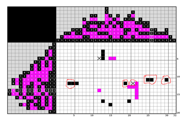 Решила без подсказок, но потратила много времени, в основном отыскивая расположение розовых клеток. Просматривать пришлось много рядов, пока что-то появилось, что дало возможность двигаться дальше. Симпатичный зверь, спасибо!