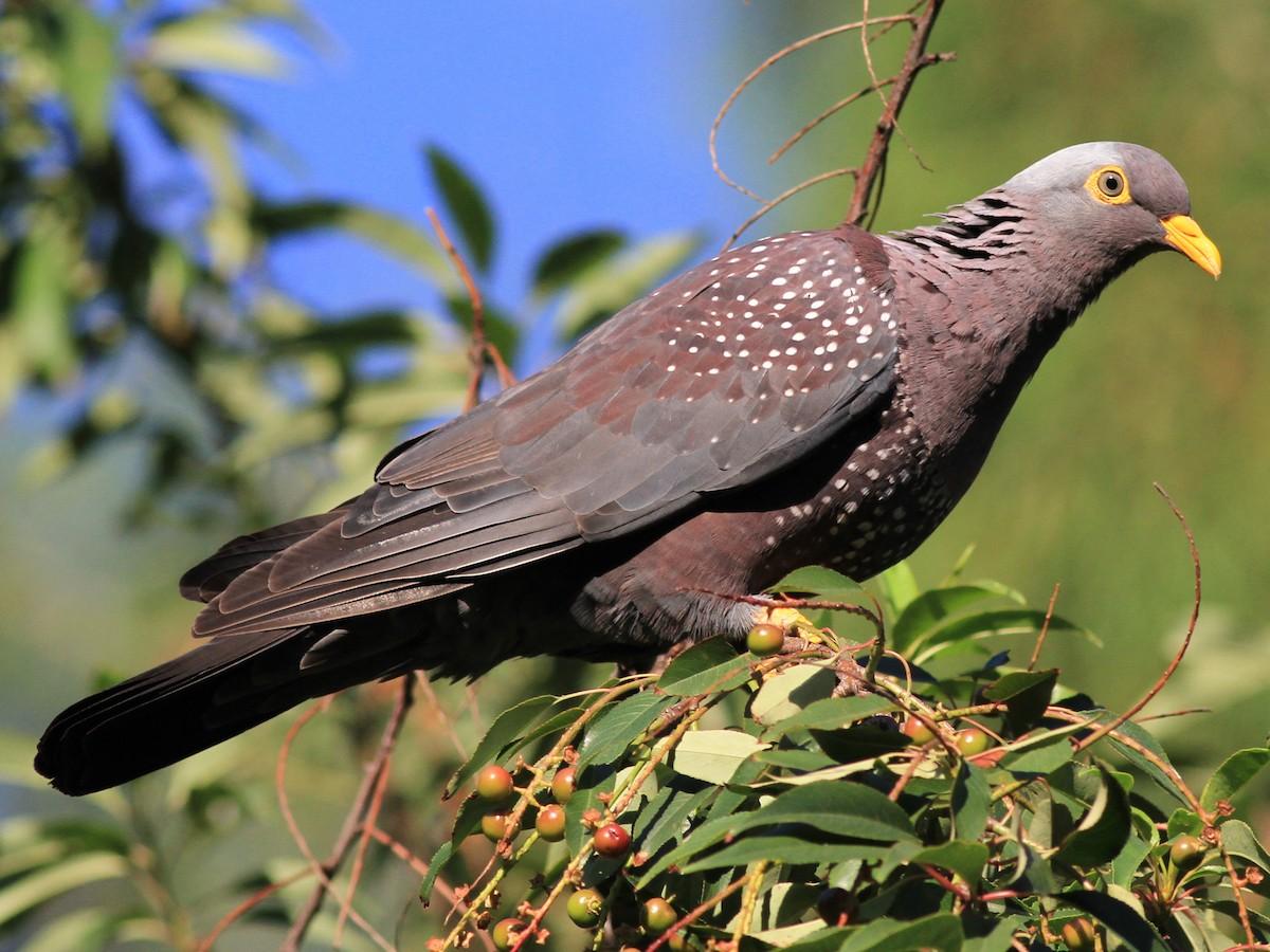 ответитьОГ -довольно крупный (до 42 см) голубь, обитающий от Эфиопии до Ю. Африки, в Анголе, в Саудовской Аравии и Йемене. Живет в горных лесах на высоте до 1, 5 км и часто кормится на с/х землях.Не такой шикарный, как гривистый голубь автора, но тоже очень красивый