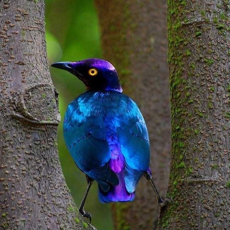 ответитьПБС – красивущая птица размером до 27 см. В оперении – фиолетовый и голубой металлик и зеленый с желтым отливом, а глаза оранжево-желтые. Самки отличаются только меньшим размером. Как и многим скворцам, блестящее фиолетовое оперение помогает ПБС маскироваться в листве, так и на земле. Такой ослепительный тон окраски их перьев во многом обусловлен тем, что они очень любят и во множестве поедают дикий мускатный орех, вернее его молодую мягкую кожуру.Очень красиво получилось! Не совсем пурпурно, но абсолютно блестяще!)))