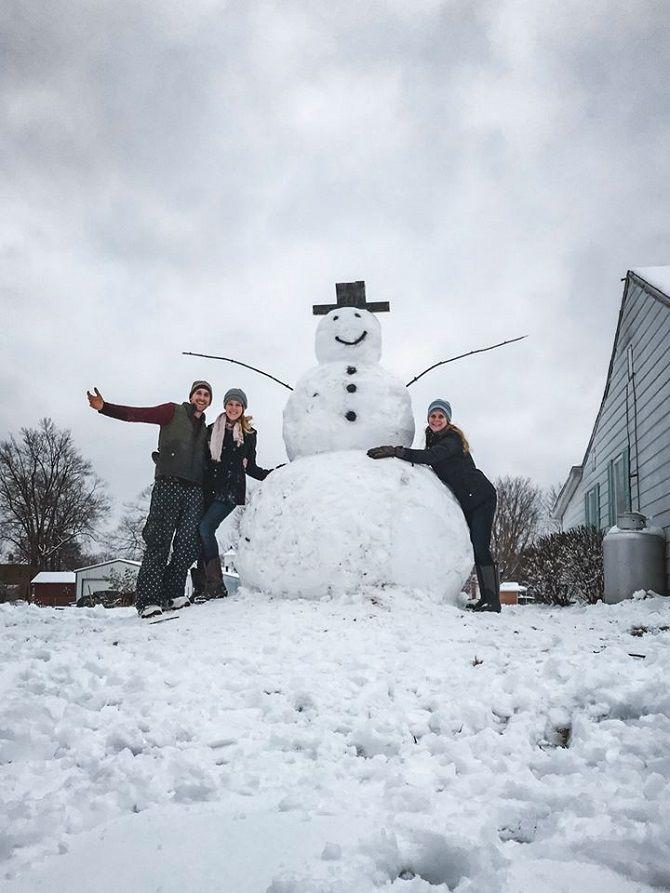 А это реальная история. Реальный трех метровый снеговик Фрости, "воздвигнутый" вокруг огромного пня.