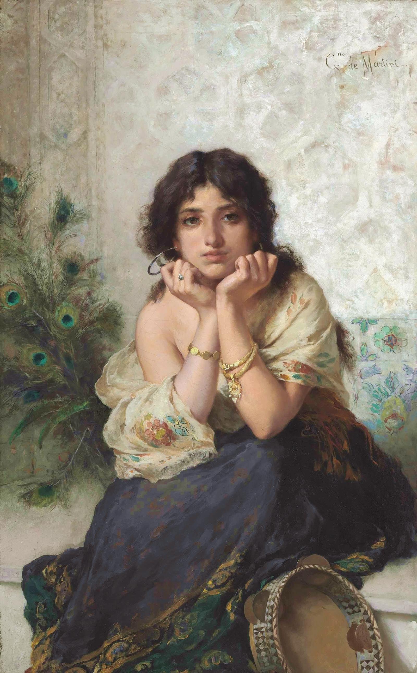 Японский кроссворд «Девушка с бубном (Гаэтано де Мартини)»