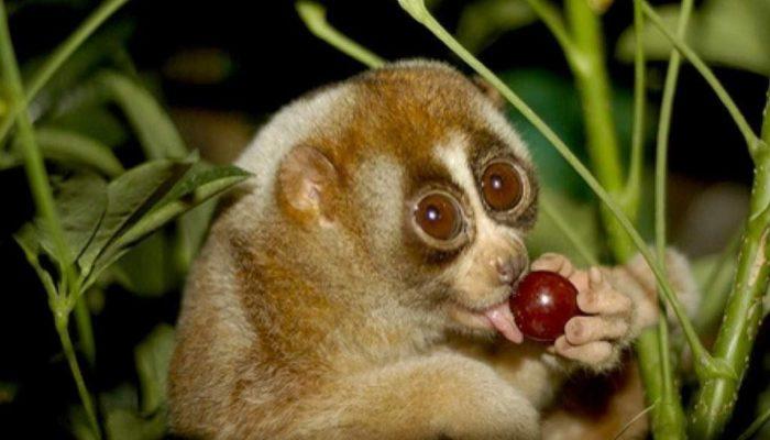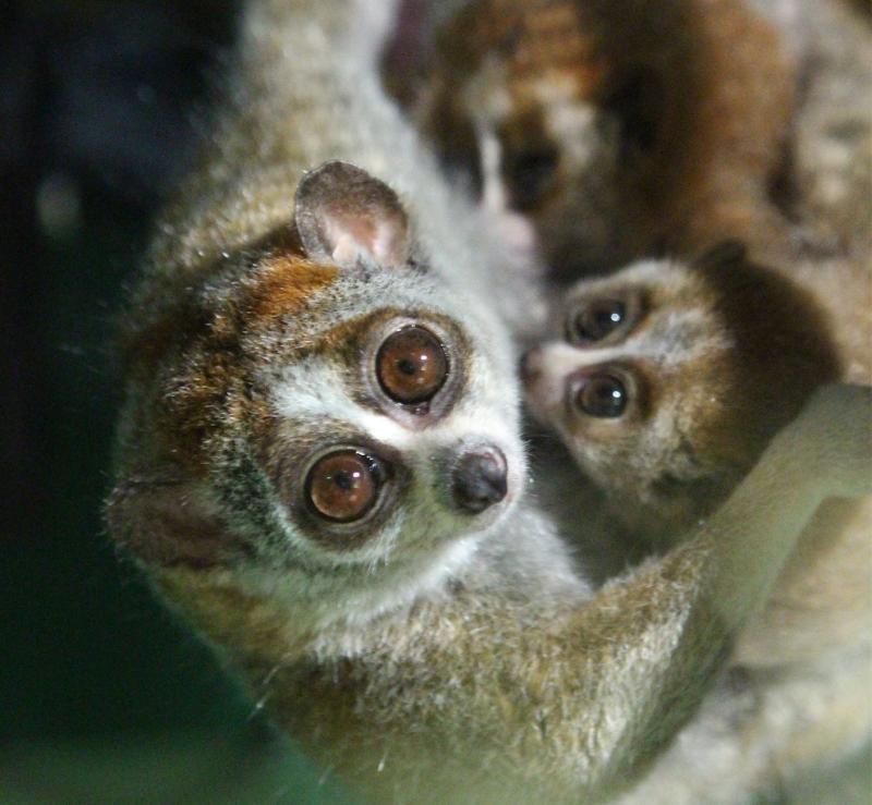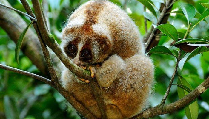 Толстые лори – приматы размером 20-40 см, обитающие в густых тропических лесах и бамбуковых рощах ю-в Азии и о-вах Индонезии.Просто лапочка! Несмотря на ядовитость)))
