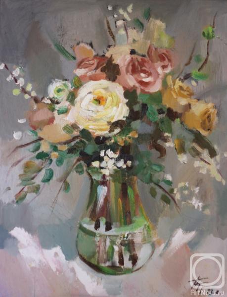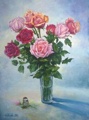 Очень понравилось, как сделано голубоватое прозрачное стекло. Такой эффект - кажется на просвет видно. Очень "осветляет" картинку. И прекрасно гармонирует с расцветкой букета.
