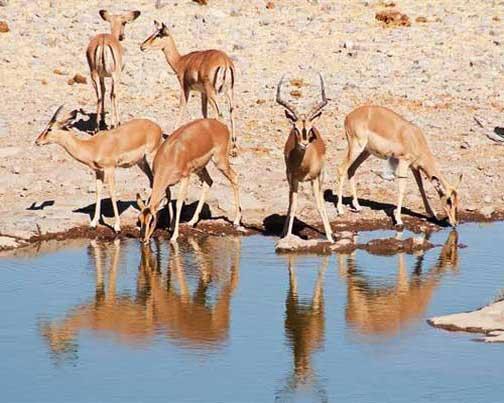 Импала с блестящей ярко-коричневой шерстью, большими светлыми глазами и тонкими лировидными рогами длиной до 90 см (только у самцов) - одна из самых красивых и самых многочисленных антилоп, обитающих в саваннах ю-з. Африки.Очень красивая, милая и грациозная антилопа.