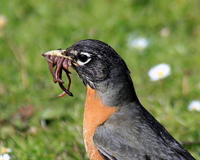Рацион питания состоит из 40% беспозвоночных. Это дождевые черви, личинки жуков, гусениц, кузнечиков. Остальные 60% приходятся на фрукты и ягоды. Именно способность переключаться на ягоды позволяет птицам довольно долго находиться в северных холодных районах. (Весной соотношение 90% к 10% в пользу животной пищи, а в холода – с точностью до наооборот)