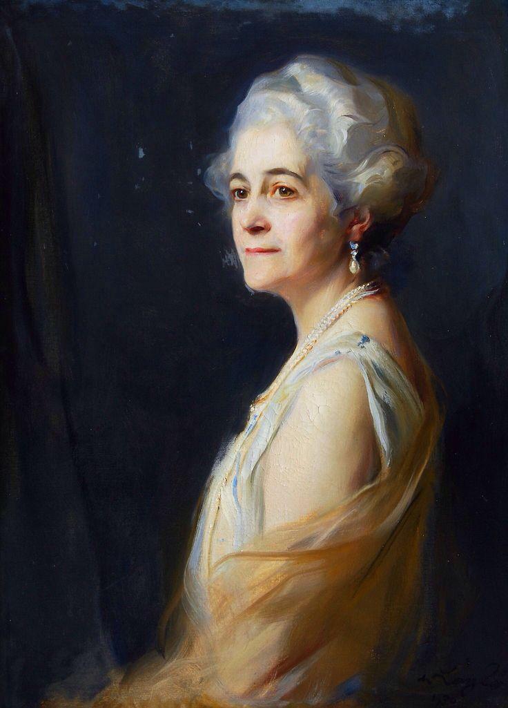 ...жанр парадного изображения знатного лица исходно подразумевает приукрашивание или хотя бы ретуширование не самых эстетически привлекательных черт клиента. Ласло же писал своих натурщиков ровно такими, какими он их видел сам. Почему же в таком случае он пользовался бешеной популярностью у желающих обзавестись своим живописным изображением? Да потому, что маэстро вместо «сглаживания» острых природно-физиогномических или анатомических «углов», придавал образам людей присущую им истинную внутреннюю глубину. Тонко чувствовавший человеческую природу художник наполнял свои работы ровно той «аурой», которая исходила от каждой конкретной персоны.Чудесная работа. Автору удалось передать всю привлекательность, внутреннюю силу и достоинство этой немолодой уже женщины, которые заложил в портрете художник. Отлично использован белый фон. И сходство замечательное.
