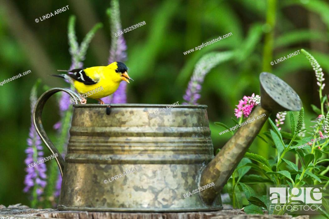 Самцы в брачный период - ярко-жёлтые, с чёрным лбом, крыльями и хвостом.