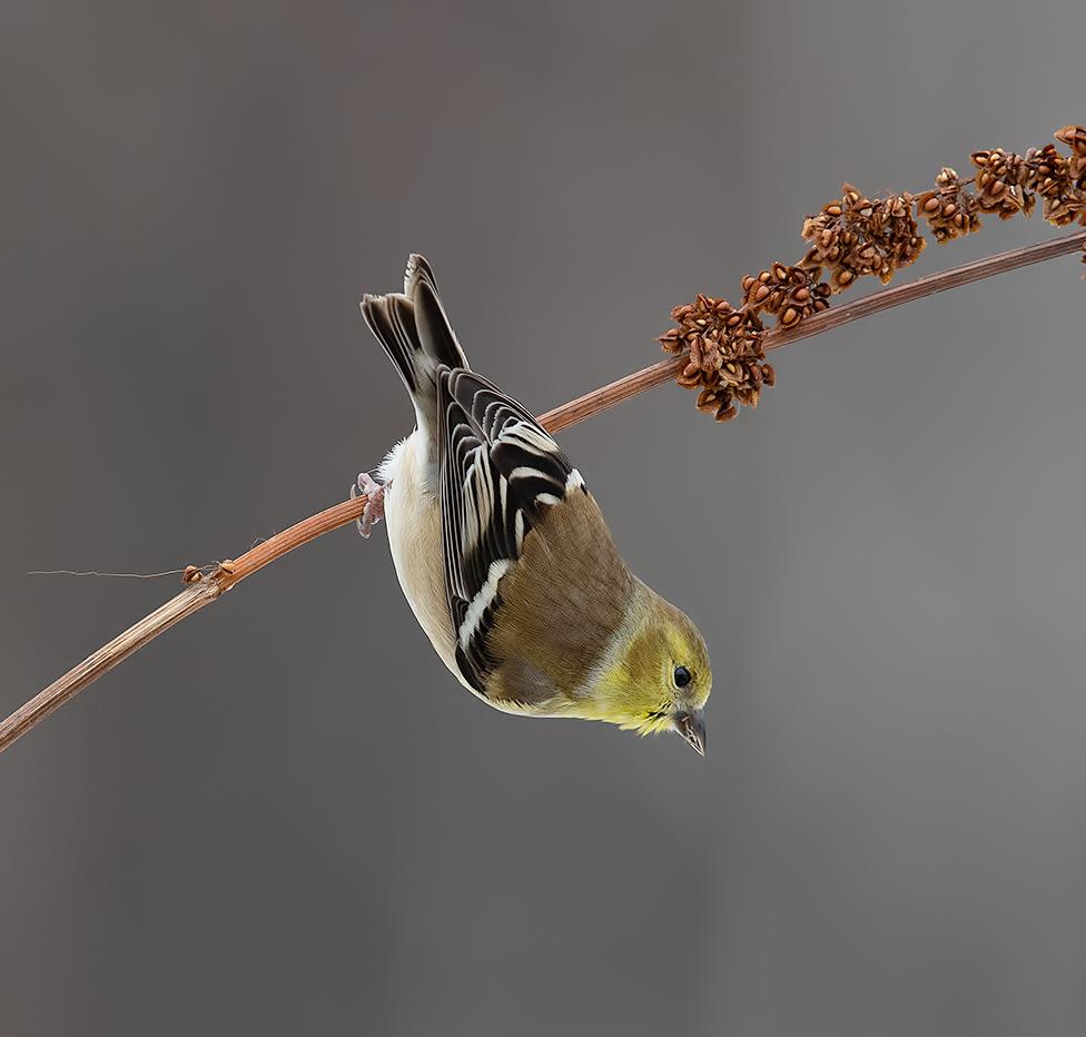ответитьОт побережья до побережья и от с. Мексики до ю. Канады, стаи американских чижей добавляют особенные краски к открытым просторам своими яркими, жёлто-чёрными перьями, суматошным полётом по невидимым холмам и долинам воздуха и славной песенкой: «Посмотрите на меня! Только посмотрите!»Прелестная, яркая птичка. Кусочек зелени очень оживляет картинку.