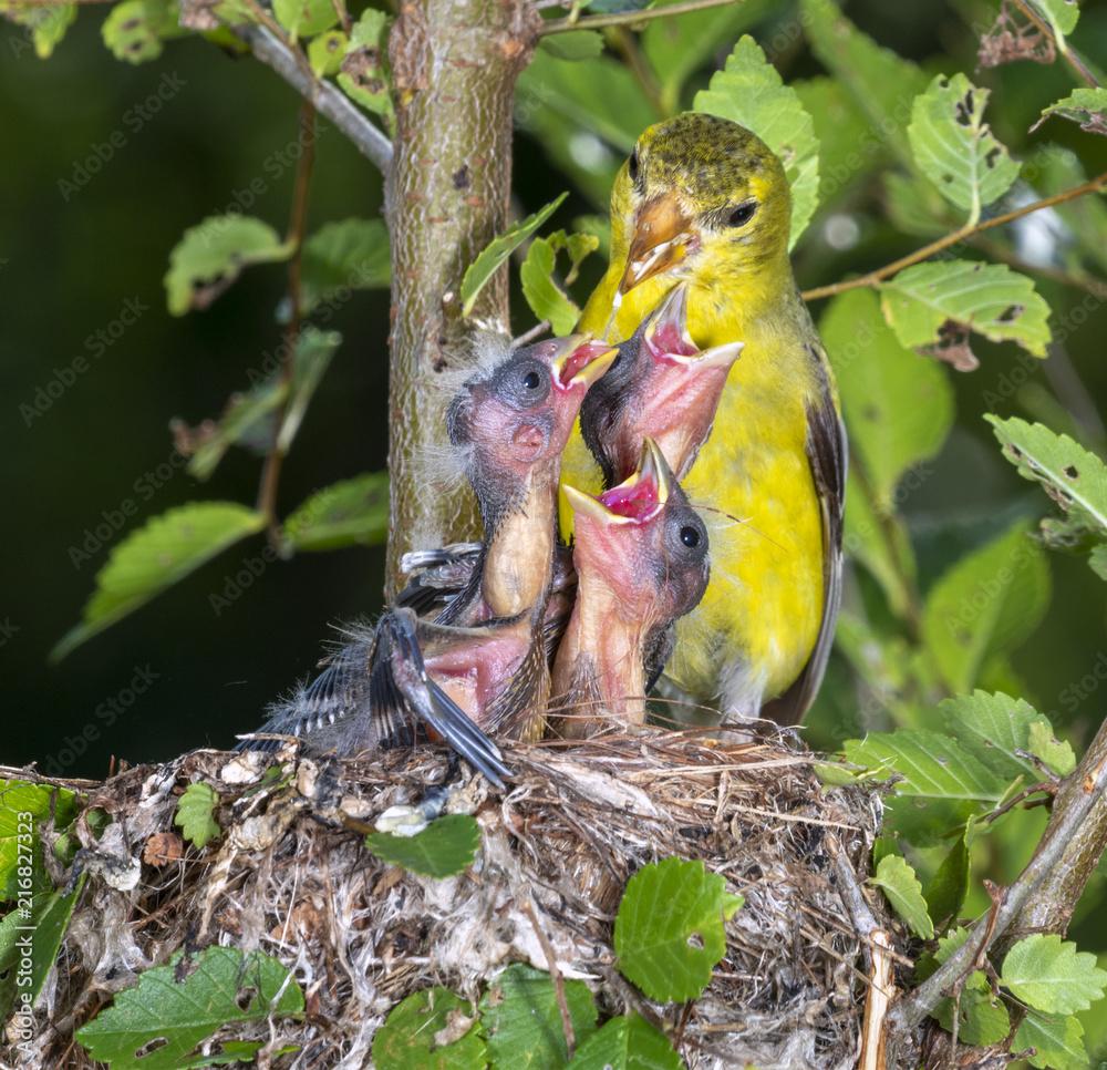 Хотя большинство питающихся семенами птиц кормят своих птенцов насекомыми, эти чижи кормят своих детей семенами, которые были очищены и отчасти уже переварены. Птицы-родители набивают свой зоб семенами (и может быть добавляют несколько крошечных гусениц или нежных тлей для дополнительного протеина и вкуса). Некоторое время спустя они отрыгивают всё это в открытые клювы их голодных птенцов, не как жидкую смесь, но частицей за частицей - и это очень необычный корм для таких малышей. Нося такую ношу, птица-родитель может накормить каждого птенца, вместо только одного-двух, каждый раз, когда она возвращается к гнезду.