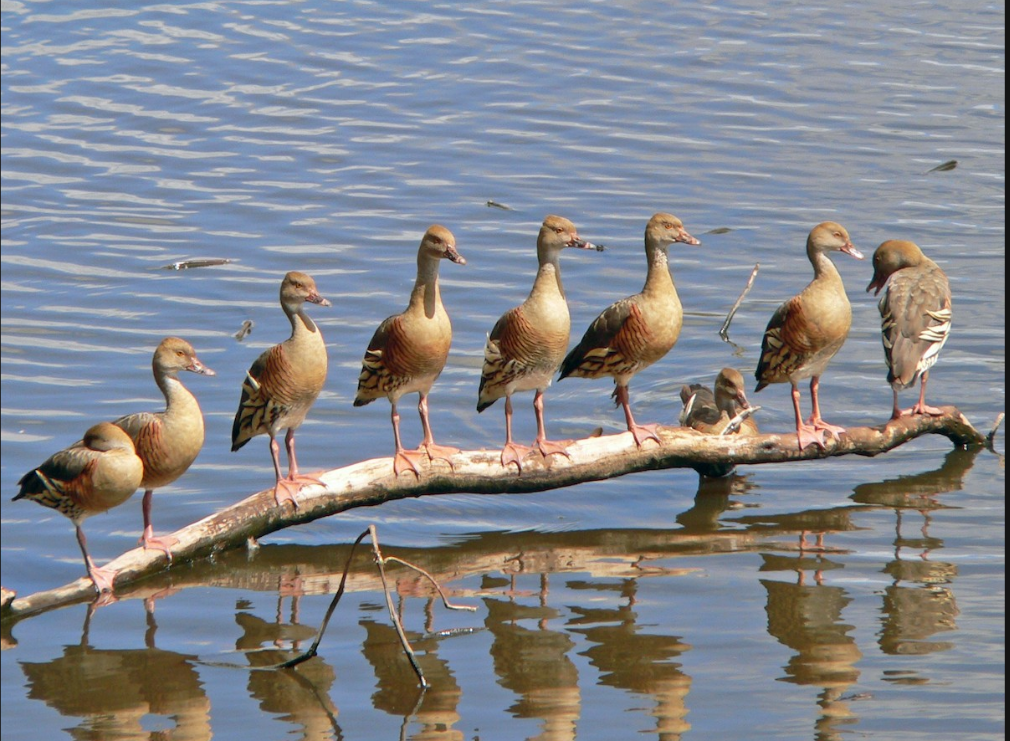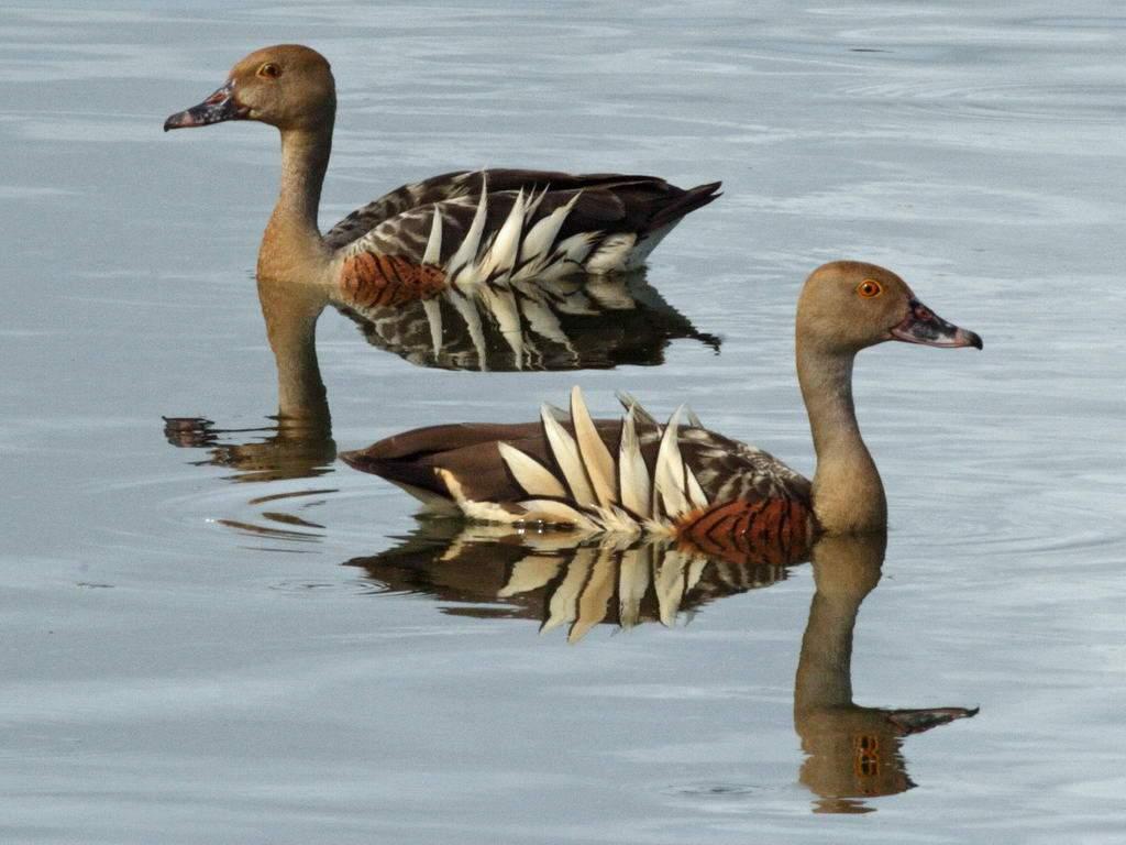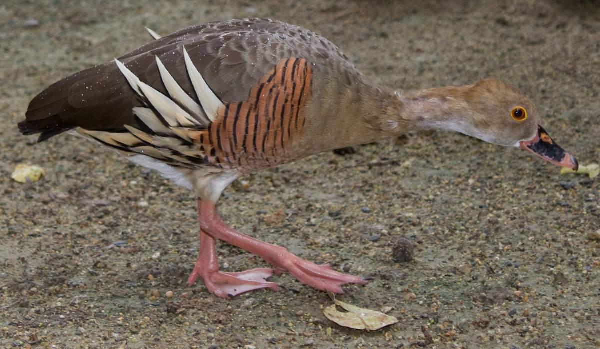 Розовоногая древесная утка (древесная утка Итона) обитает в Н. Гвинее, Тасмании и Австралии. Это плотная, крепкая птица с короткой шеей, сильными длинными темно-розовыми ногами с хорошо развитыми перепонками, окрашенная преимущественно в коричневые цвета. Пальцы ног устроены так, что позволяют птице усаживаться на ветку дерева. Эта особенность послужила названием всему роду древесных уток.Интересная птица, красиво получилась
