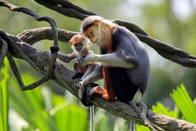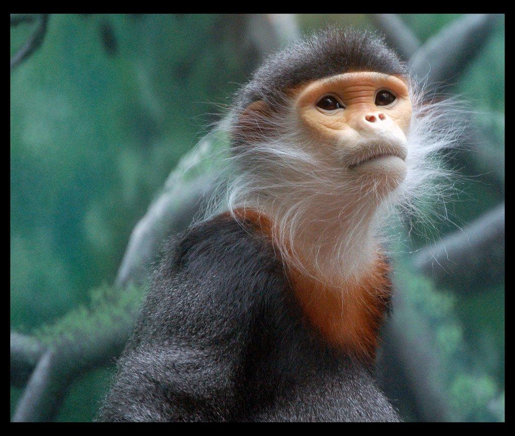 ответитьЧерноногие тонкотелы – мартышковые приматы размером ок. 60 см (с хвостом - 1,3 м), обитающие от с-в Камбоджи до ю. Вьетнама. Населяют смешанные вечнозеленые и сухие леса в прибрежных районах. Их можно узнать по черным ступням, черно -серой шерсти, желтым отметинами вокруг глаз и относительно короткой светлой «бороде»Очень красивое и живописное животное получилось!