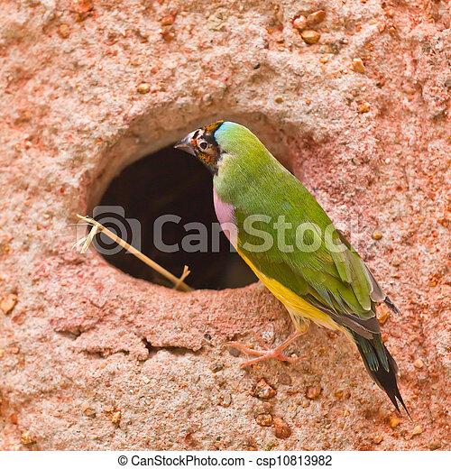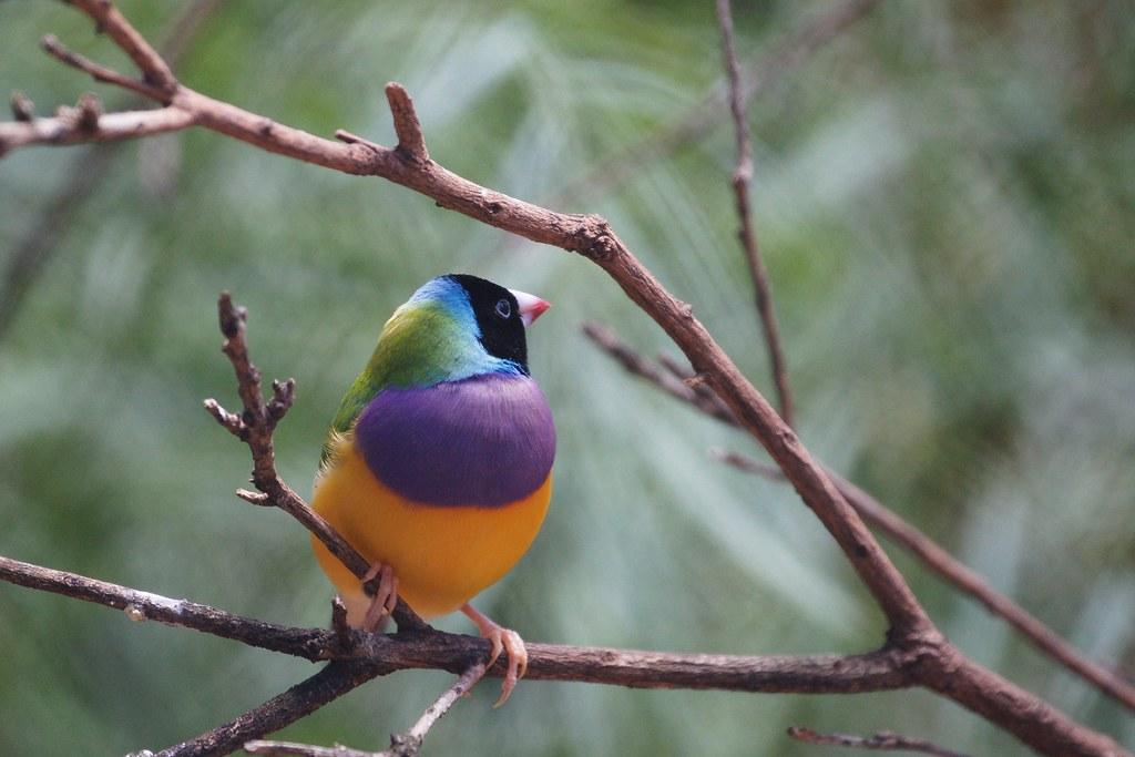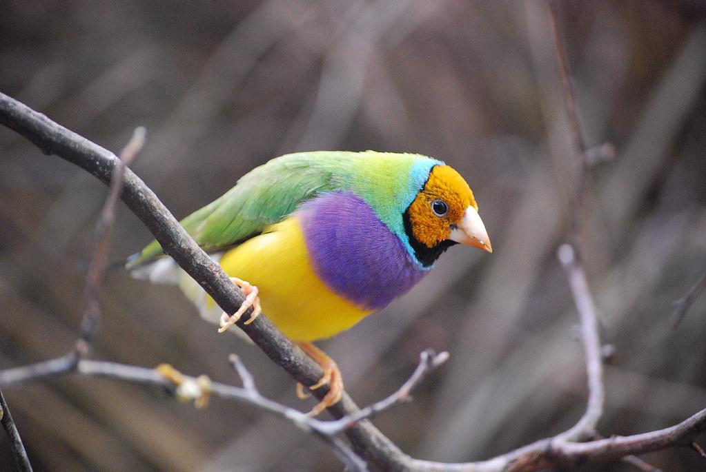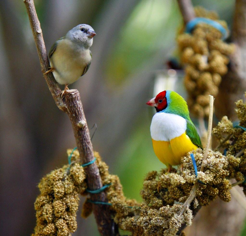 Гульдова амадина считается одной из самых ярких и красивых австралийских птичек. Этот вид впервые был описан английским зоологом и художником Дж. Гульдом в 1844 году. Правда, Гульд описал только черноголовую разновидность. А есть еще и красно- и желтоголовые. Больше всего в природе именно черноголовых амадин, а вот желтоголовых очень мало — 1:3000. Такой цвет возник из-за природной мутации.Чудесная, "золотая" птичка!