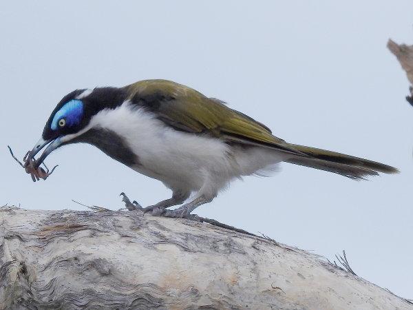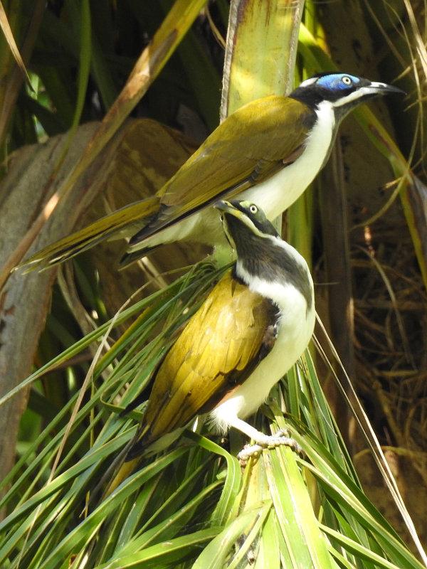 Их трудно не заметить благодаря довольно крупным размерам и шумному поведению. Нападения на банановые плантации, где они любят полакомиться спелыми плодами, снискали, им дурную репутацию. На самом деле они скорее приносят пользу. Основную часть их рациона составляют насекомые – большей частью вредители. Еще синеухие медососы охотятся на мелких ящериц.