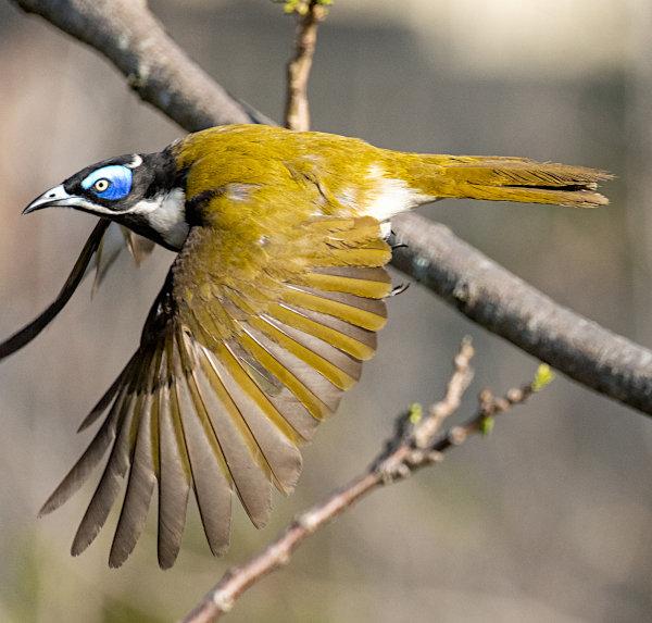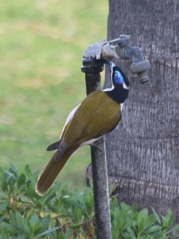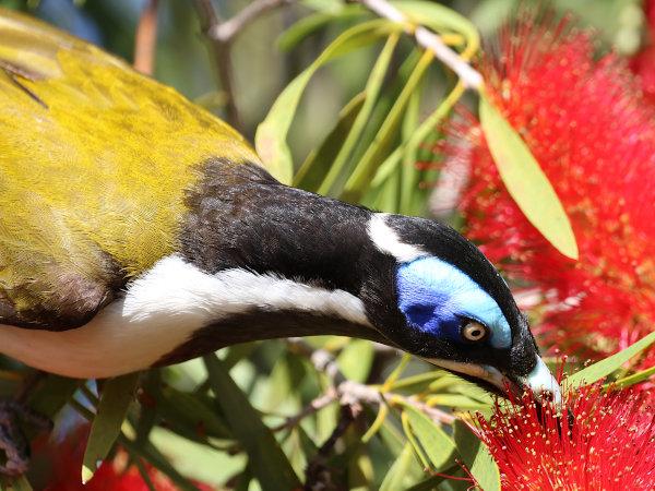 Синеухий (голуболицый) медосос— новогвинейский и австралийский вид воробьинообразных птиц размером ок. 27 см. Распространен в южных областях Новой Гвинеи, северных и восточных районах Австралии.Очень красивое сочетание синих, зеленых и золотых тонов. Пичужка-красотушка!