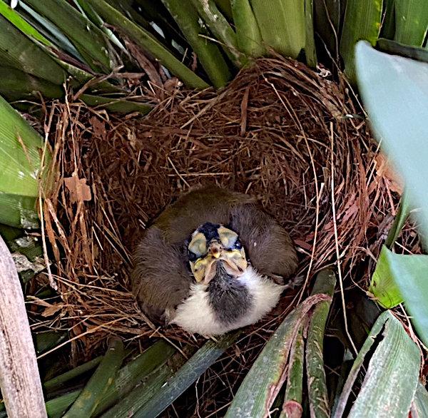 Гнездо представляет собой массивную и глубокую, но не слишком аккуратную чашу из полосок коры и травы, располагающуюся в развилке ветвей. Могут занимать и старые гнезда других медососов, предварительно ремонтируя их.