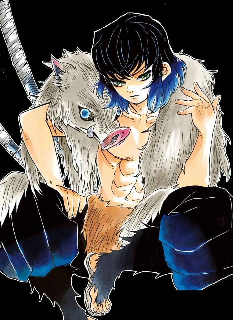 Иноске Хашибира - герой анимешки. Охотник на демонов, выросший один в лесу и воспитанный кабанами. Поэтому в бою надевает кабанью маску. А так очень даже симпатичный.