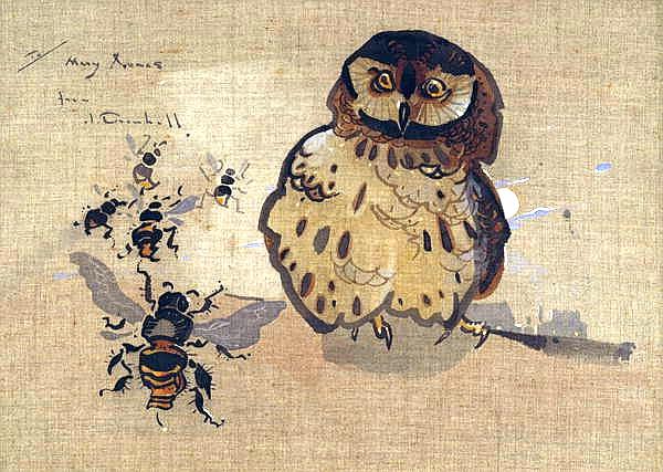 Как где пчелы? Раз сова не спит, значит ночь. Значит пчелы спят в улье. А вот на картине Дж. Кроухола ( на фото ниже) сова удивляется, почему пчелы не спят))
