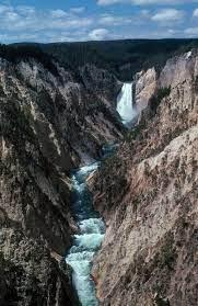 Возможно, автор имел ввиду эту часть Йеллоустоунского национального парка. Две скалы, а между ними река в доине?) Верхняя часть снимка.