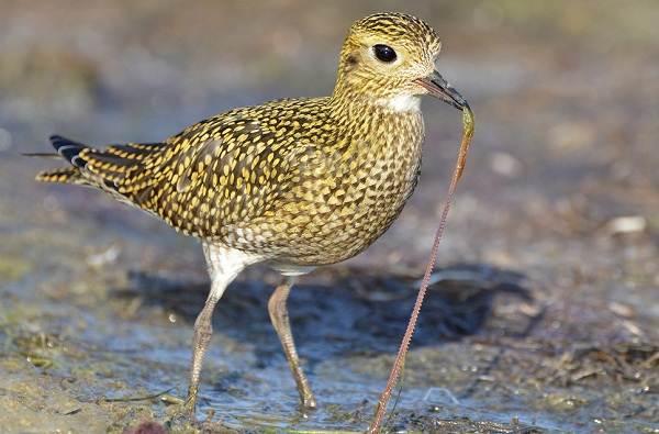 ответитьЭто довольно крупный (до 30см) куличок с короткими ножками, крепким коротким клювом. Верх золотистый с мелкими черными пятнами, (отсюда и название) Лоб, щёки, и чёрная нижняя часть тела окаймлены белой полосой Самка окрашена бледнее. В негнездовой период оба пола окрашены в одинаковый золотисто–бурый цветПолностью присоединяюсь к предыдущему комменту!