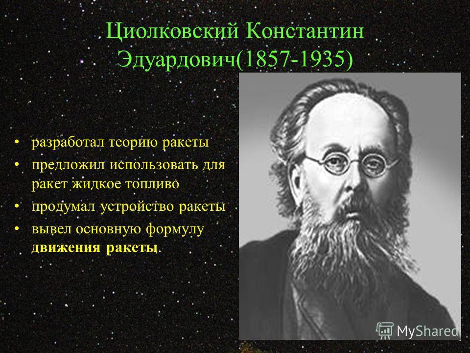 Все основные его концепции нашли своё практическое подтверждение. Не только дирижабль с металлическим корпусом, но и «ракетные поезда», которые воплотились в виде многоступенчатых космических ракет. Его исследования сыграли свою роль в отечественном ракетостроении. В статье «Исследование мировых пространств реактивными приборами» он впервые обосновал, что аппаратом для успешных космических полетов могла стать ракета. Ученый разработал концепцию жидкостного ракетного двигателя. Определил скорость, необходимую для выхода аппарата в Солнечную систему («вторая космическая скорость»). Циолковский занимался многими практическими вопросами космоса, которые позднее сформировали основу для советского ракетостроения. Предложил варианты ракетного управления, систем охлаждения, конструкции сопла и системы подачи топлива.