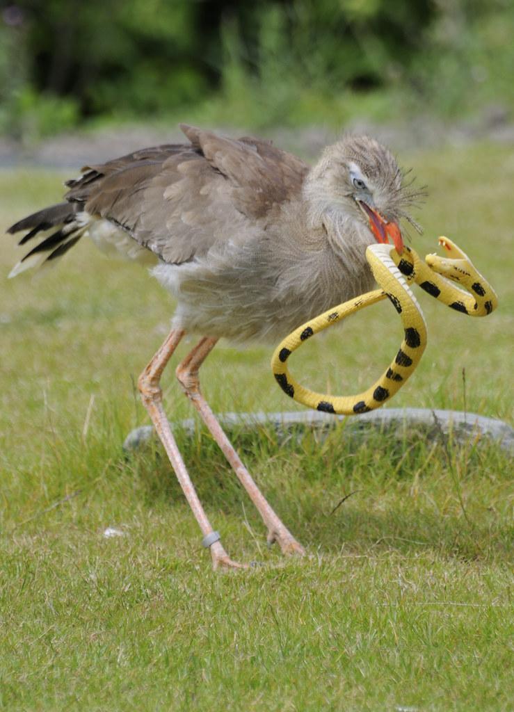 6-8. Там их все знают как отбитых птахх, и фермеры "нанимают" их на работу как сторожей для защиты домашних птиц от хищников. Они едят членистоногих, лягушек, пресмыкающихся, грызунов и даже ядовитых змей, хотя иммунитета к яду у них нет.