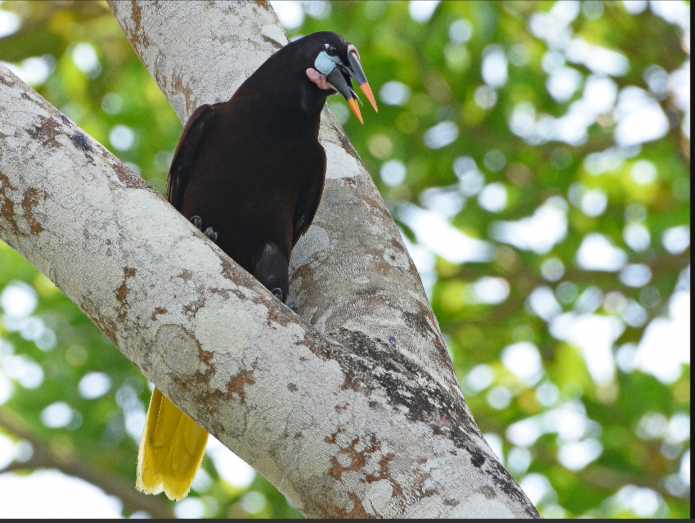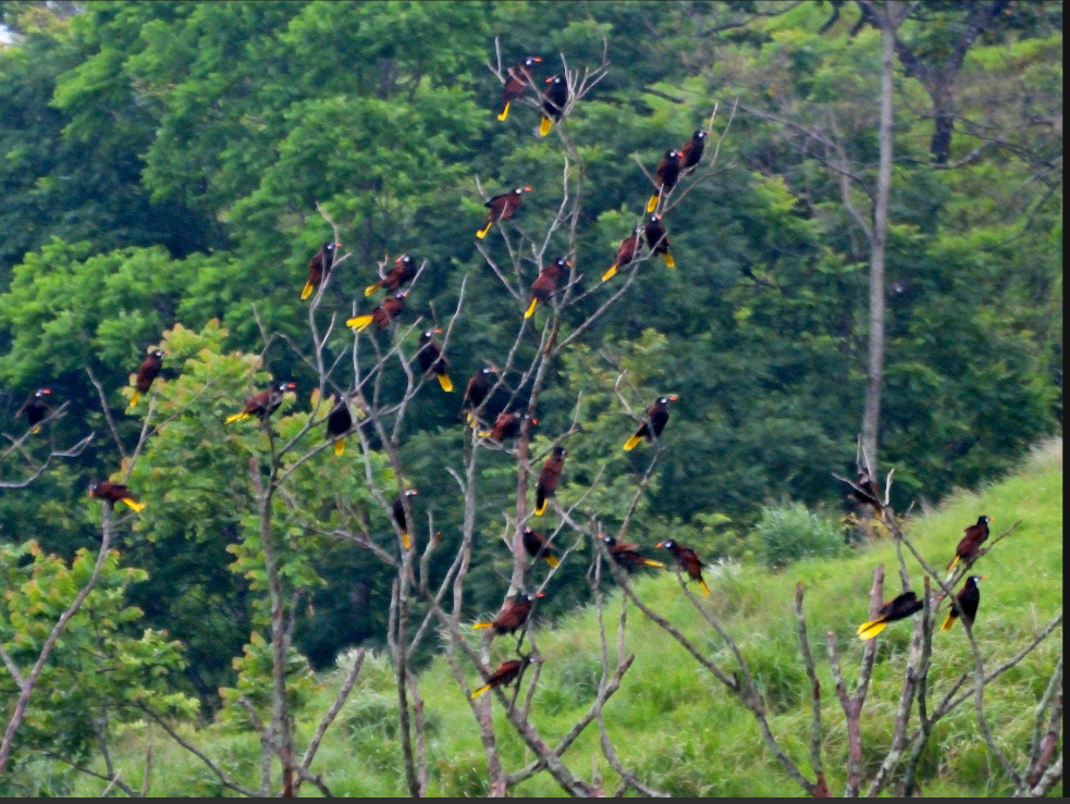 Голос оропендолы-Монтесумы — один из самых незабываемых среди многообразия звуков, раздающихся во влажных тропических лесах на побережье двух океанов. Булькающее «тик-так, глик-глак-глю-ю» доносится с верхушек деревьев в период спаривания, когда самцы оропендолы-Монтецумы делают все возможное, чтобы обойти конкурентов. Крепко ухватившись за ствол дерева, самцы начинают старательно раскланиваться, чтобы показать ярко-желтое оперение в нижней части хвоста, и заводят любовную песню. https://www.youtube.com/watch?v=G0aOQCSFPiI