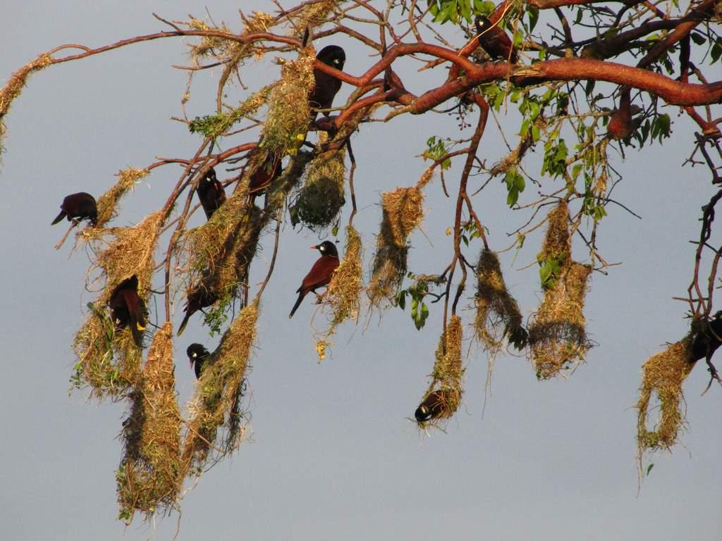 Гнезда висят на дереве гроздьями, словно экзотические плоды длиной 60- 180 см. Плетет его самка 10 дней из волокон банана и гибких прутиков. https://youtu.be/wNHK4sNteII
