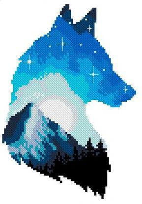 Японский кроссворд «Лунный пейзаж и профиль волка»