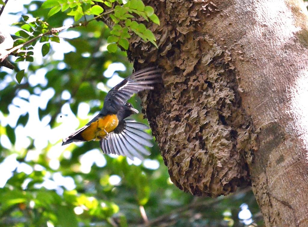 В брачный период самцы собираются в небольшие группы и поют, чтобы привлечь самку. Избрав себе пару, строят гнездо. Используют старые термитники, старые гнезда ос (иногда те, чьих обитателей они же недавно и съели) или «выцарапывают» дупло в мертвом дереве. Яйца насиживают и выкармливают птенцов оба родителя.