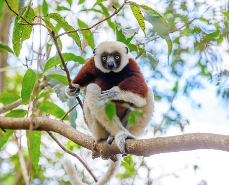 ответитьОреховую сифаку (она же - сифака Кокереля), обитающую в вечнозеленых и смешанных лесах Мадагаскара, узнать довольно просто: крупное темно-шоколадного оттенка пятно на груди и такого же цвета передние конечности ярко выделяются на фоне густой белой шерсти.Прелестный лемур!