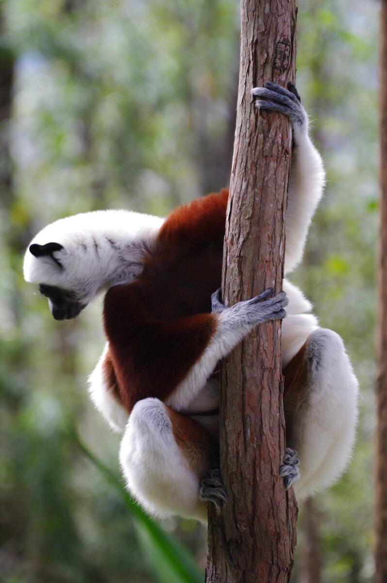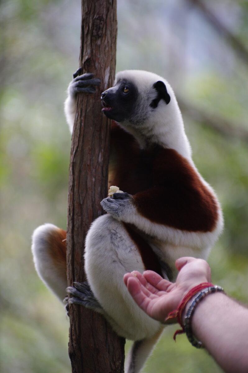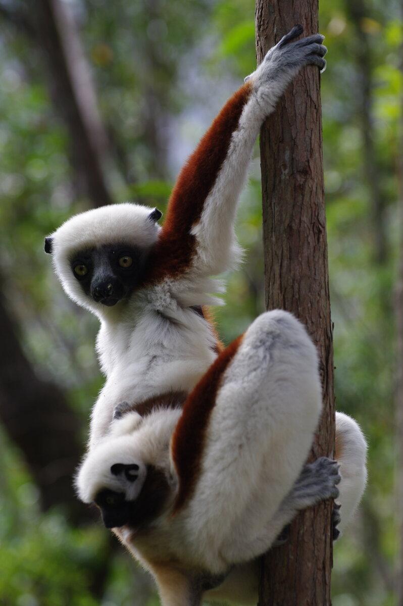 В дикой природе этих чудесных животных можно увидеть только в сухих лесах на севере Мадагаскара, да и то, если повезёт. Зато в специальных парках их даже можно погладить. За морковку, конечно. Или за банан. Очень они приятные на ощупь, надо сказать.