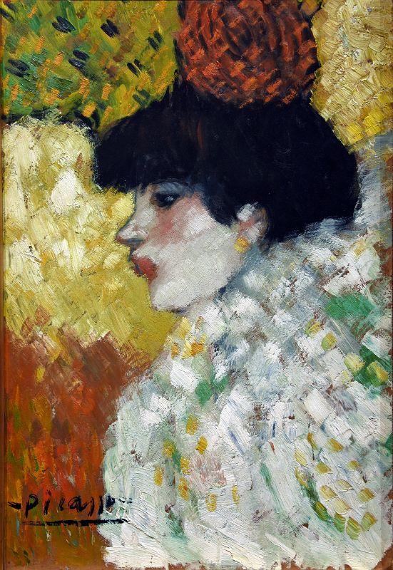 Эта картина из Нью-Йоркского музея «Метрополитен» (Другое название – «Девушка с красным цветком в волосах») принадлежит к небольшой группе работ художника, на которых он изобразил экстравагантно одетых женщин, напоминающих парижский полусвет танцевальных залов и борделей.