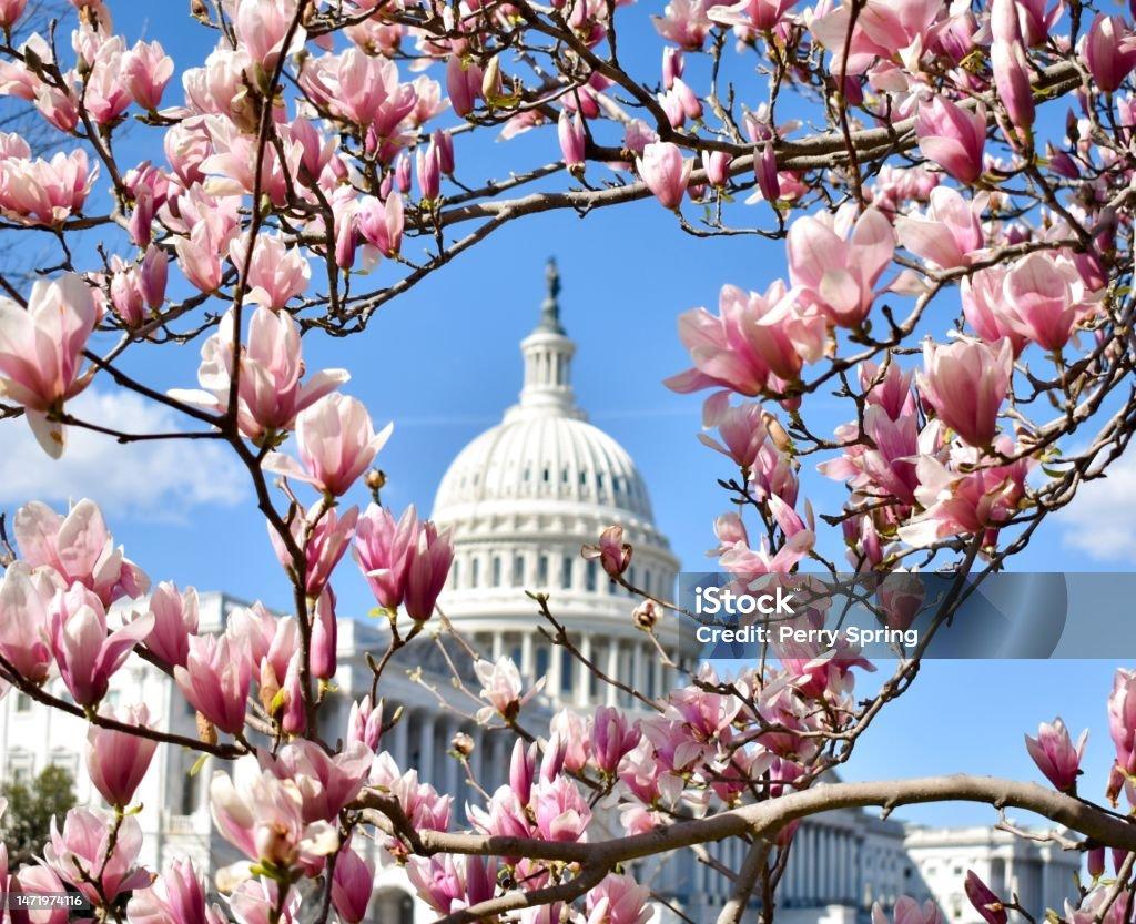 Конечно, в Вашингтоне, в том числе и у Капитолия, растет сакура, но более характерным деревом, растущим у Капитолия, цветущим и пахнущим, является магнолия)
