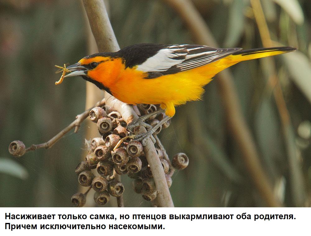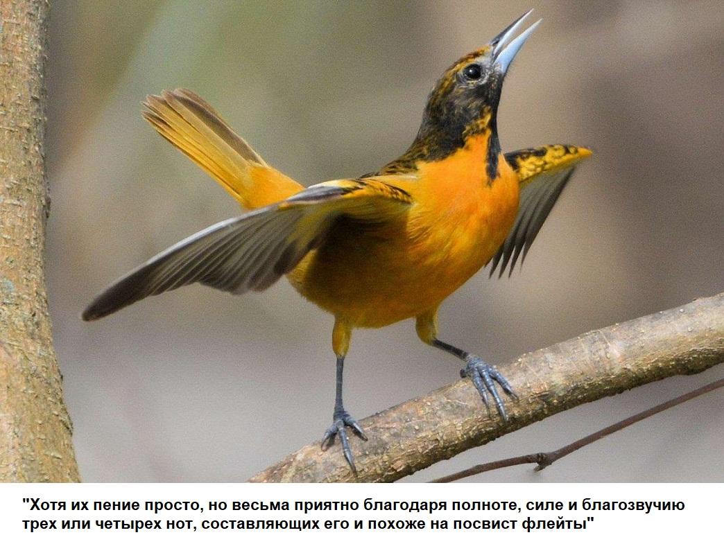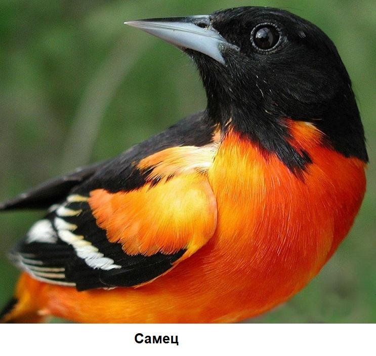 Это небольшая (до 18 см) воробьинообразная птица. Иволгам не родственница, была так названа за чисто внешнее сходство. А «балтиморская» - за сходство расцветки самцов с цветами на гербе лорда Балтимора (Черный и оранжево-красно-желтый). Самки серых и бледно-желтых тонов.Очень классная птичка получилась. "Толстый и красивый парниша")))