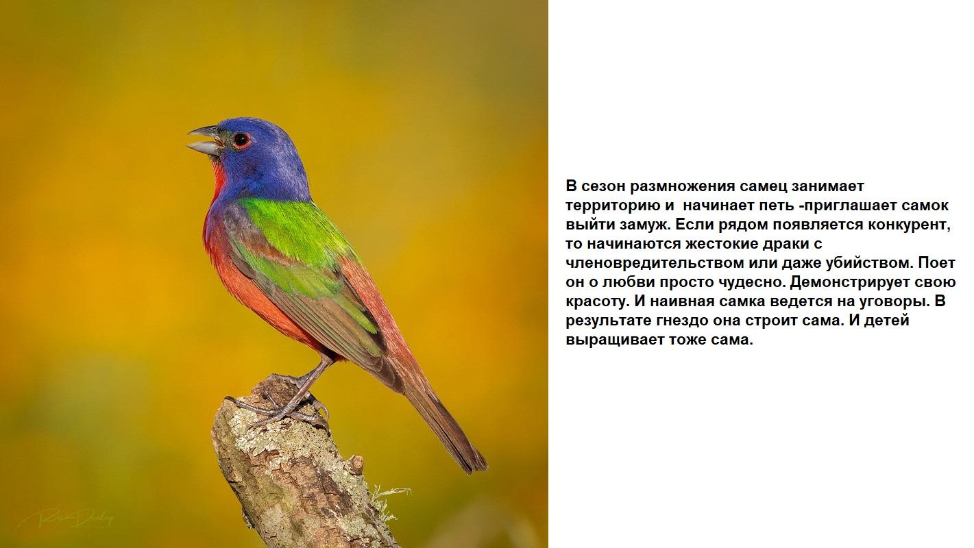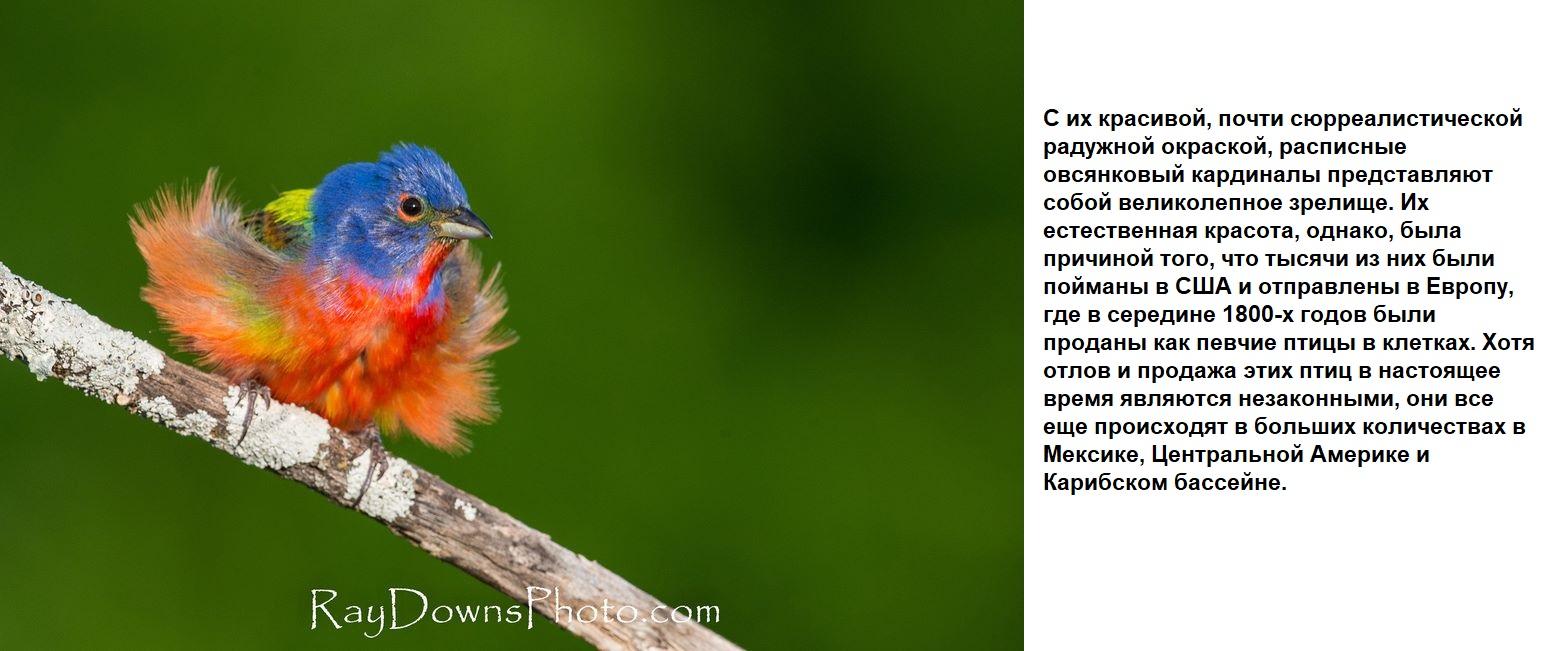 ответитьРасписной овсянковый кардинал, (великолепная овсянка) - небольшая (ок. 13 см) певчая птичка, распространенная в США и Мексике, зимует на Багамах, Ямайке, Панаме и Кубе. Где населяет фруктовые плантации, парки и сады.Просто великолепно!