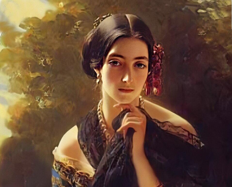Спасибо за завершающий портрет из "римской остерии"! Осмелюсь Вам предложить портреты очень красивой русской аристократки, княгини Леониллы Витгенштейн (урожденной Барятинской) пера художника Ф.-К. Винтерхальтера. Ниже два портрета и фрагмент, надеюсь, один из них Вас заинтересует. Еще раз благодарю за удовольствие разгадывания Ваших работ, они лучшие на сайте!