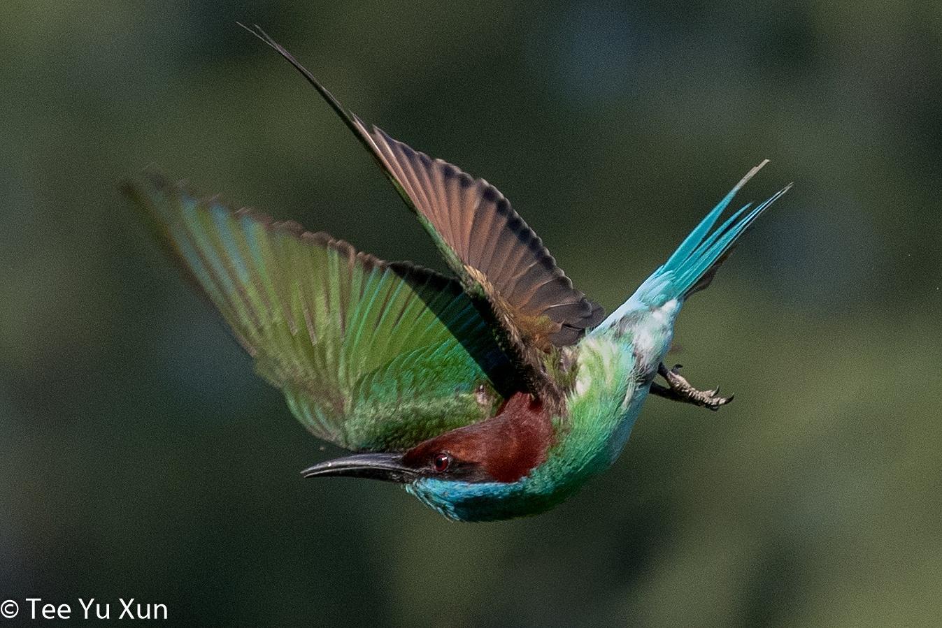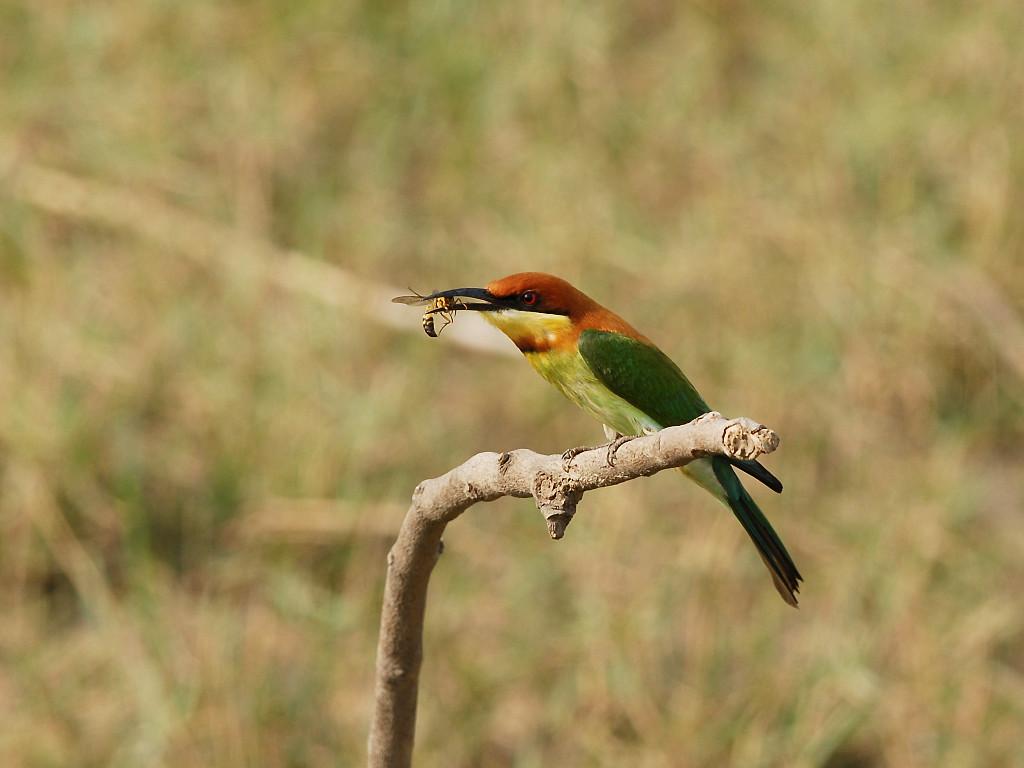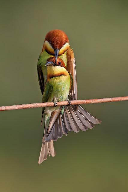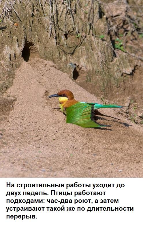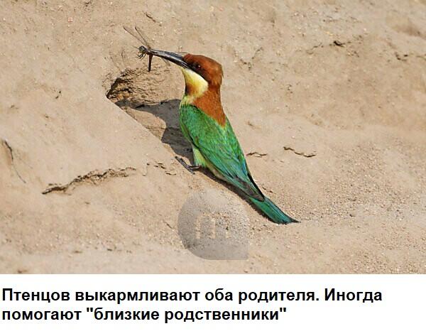 Буроголовая (каштановая) щурка — яркая, как и все щурки, птица - голова ярко-каштановая с черной «полумаской», крылья зеленые с широкой черной полосой, спинка от лазурного до бледно-бирюзового, хвост зеленый с голубоватым кончиком.Какой яркий, красивый птах!
