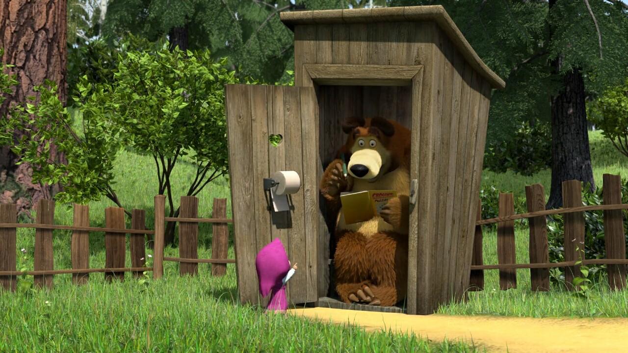 Смею заметить, что у медведя медвежья болезнь и именно поэтому он в этом домике, а планшет или что там у него в лапе, для маскировки)))