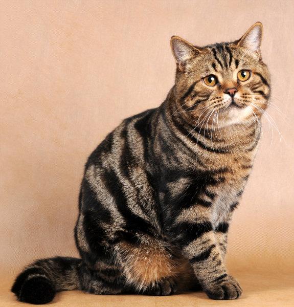 Табби-любая домашняя кошка с характерной отметиной в форме буквы М на лбу, полосами у глаз и поперёк щёк... Щёки просматриваются, а буквы "М" нет...