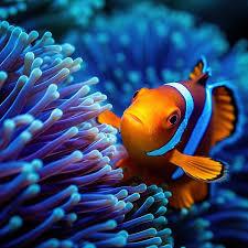 ответитьРыбка-клоун зачастую живет в симбиозе с актиниями. Актинии обычно имеют яркую окраску, в том числе и синюю. И рыбка, и актиния имеют обоюдную выгоду от такого союза) Наверное, автор и изобразила их рядом)