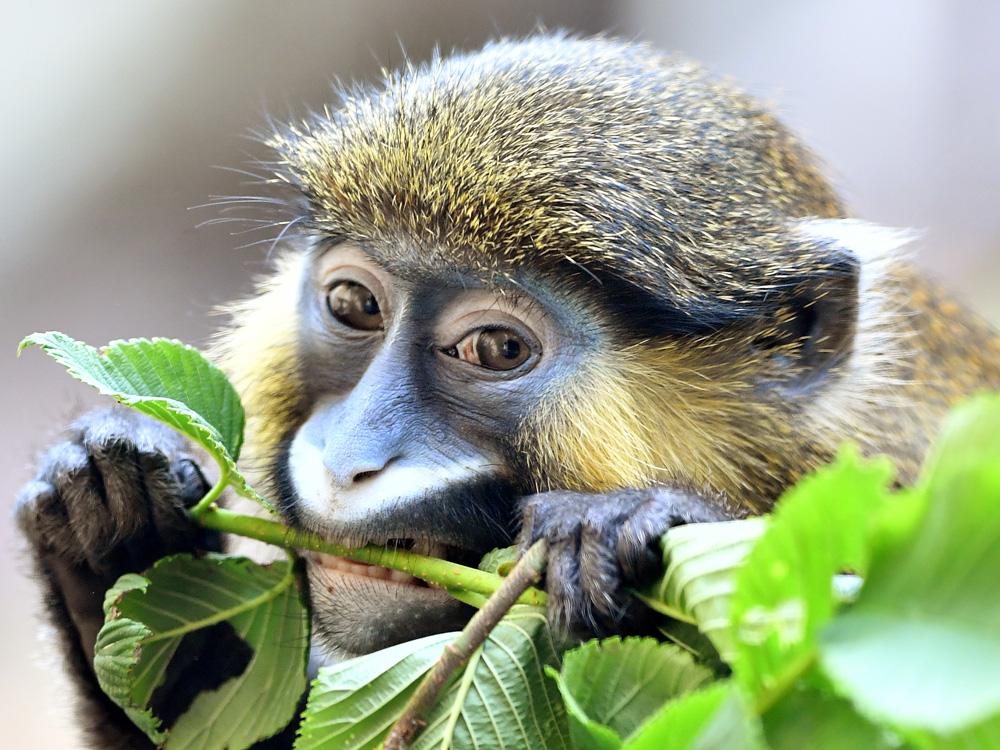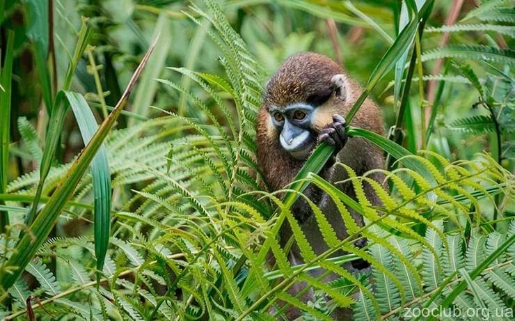 Характерная особенность голуболицых мартышек (усатые мартышки, муйдо) - голубая кожа на лице и белые усы у самцов. Роскошный оливково-зеленый мех с золотистым отливом и ржаво-красный хвост.Чудный зверек, прекрасная детализация. Даже выражение "лица" такое человеческое!